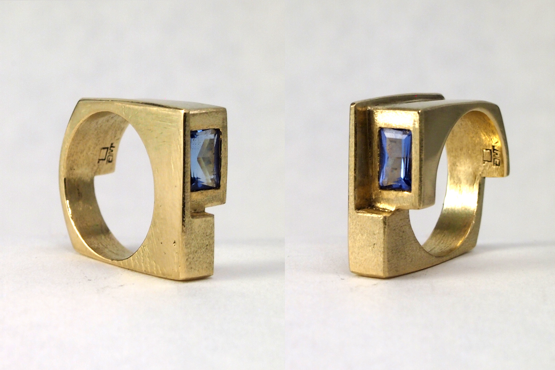 Tanzanite Engagement Ring18K gold Modern architecture to house a tanzanite stone for a furniture designer's engagement ring